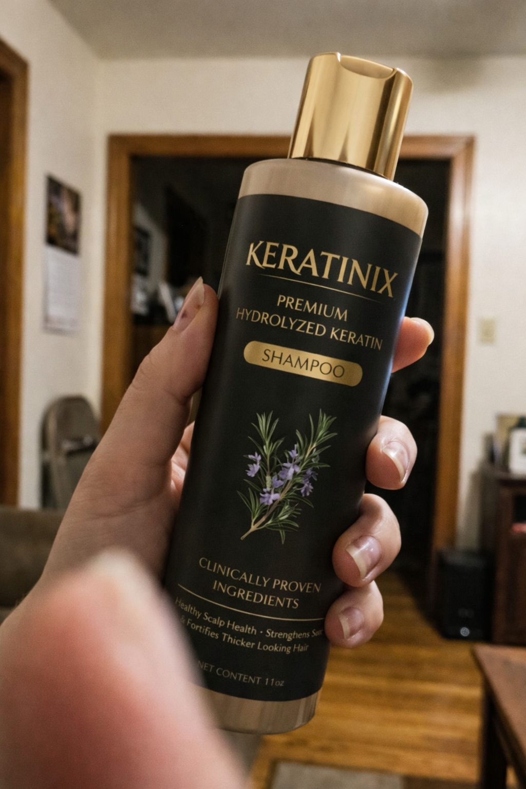 A gentle rosemary + keratin formula designed to reduce breakage and support fuller-looking hair with consistent use.